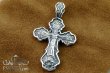 На лицьовій стороні хреста зображено Розп'яття Ісуса Христа. На звороті - коротка молитва, звернена до Господа, яка традиційно поміщається на натільних хрестах: «Спаси і збережи». Висота: 5.5 мм
